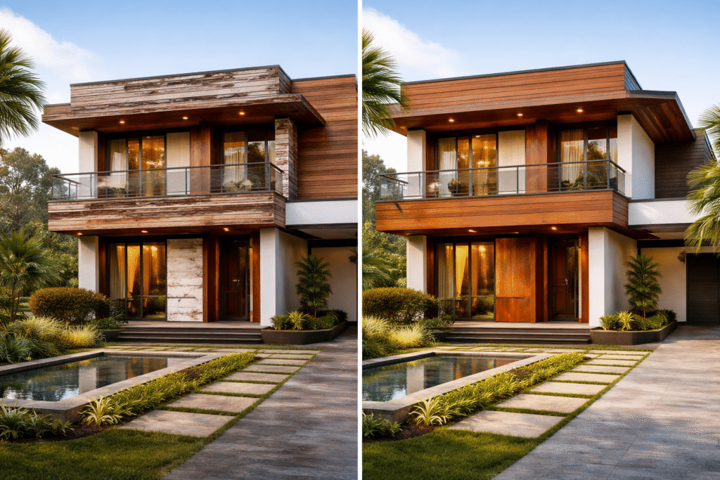 There is something deeply appealing about natural wood on a home exterior. The warmth, the texture, the organic character —